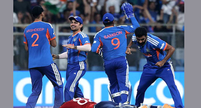 மும்பையின் வான்கடே மைதானத்தில் நடந்த பரபரப்பான டி20 உலகக் கோப்பை அரையிறுதியில், இந்தியா 253 ஓட்டங்கள் வித்தியாசத்தில் சாதனை படைத்து, இங்கிலாந்தை 7 ஓட்டங்கள் வித்தியாசத்தில் வீழ்த்தி நியூசிலாந்திற்கு எதிரான இறுதிப் போட்டியை எட்டியது.