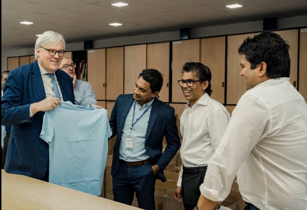 இலங்கைக்கான பிரித்தானிய உயர்ஸ்தானிகர் அன்ட்ரூ பற்ரிக் மற்றும் கைத்தொழில், முயற்சியாண்மை அபிவிருத்தி பிரதி அமைச்சர் சத்துரங்க அபேசிங்க ஆகியோர் பிரித்தானியாவுக்கு ஏற்றுமதி செய்வதற்காக தயார்நிலையில் வைக்கப்பட்டுள்ள ஆடையுற்பத்தி மற்றும் தர உத்தரவாத வசதிகளைச் சென்று பார்வையிட்டனர்.