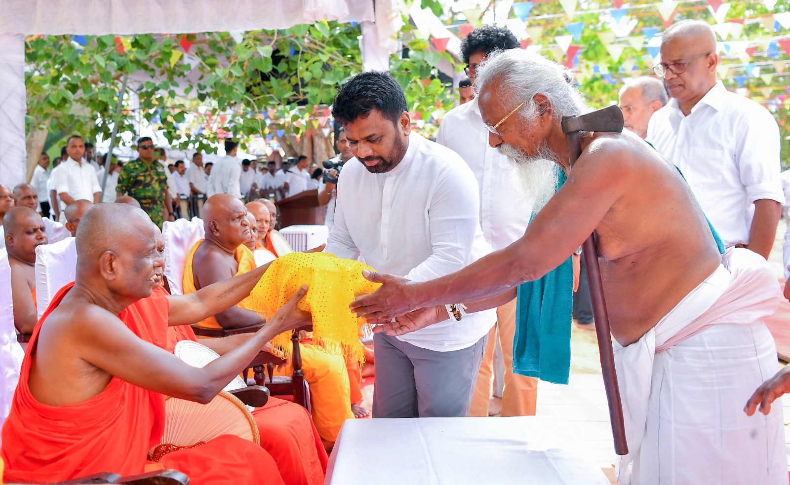 சம்பிரதாயபூர்வமாக ஜய ஸ்ரீ மஹா போதிக்கு பூஜை செய்யவதற்கான தூய தேன் பானை இதன்போது ஆதிவாசிகளின் தலைவர் ஊருவரிகே வன்னில எத்தோவினால் ஜனாதிபதியிடம் வழங்கப்பட்டதுடன்,ஜய ஸ்ரீ மஹா போதியவிற்கு நெய் பூஜை செய்வதற்காக சப்ரகமுவ வரலாற்று சிறப்புமிக்க சமன் தேவாலயத்தில் இருந்து கொண்டு வரப்பட்ட நெய் பானையும் ஜனாதிபதியிடம் இதன்போது கையளிக்கப்பட்டது.