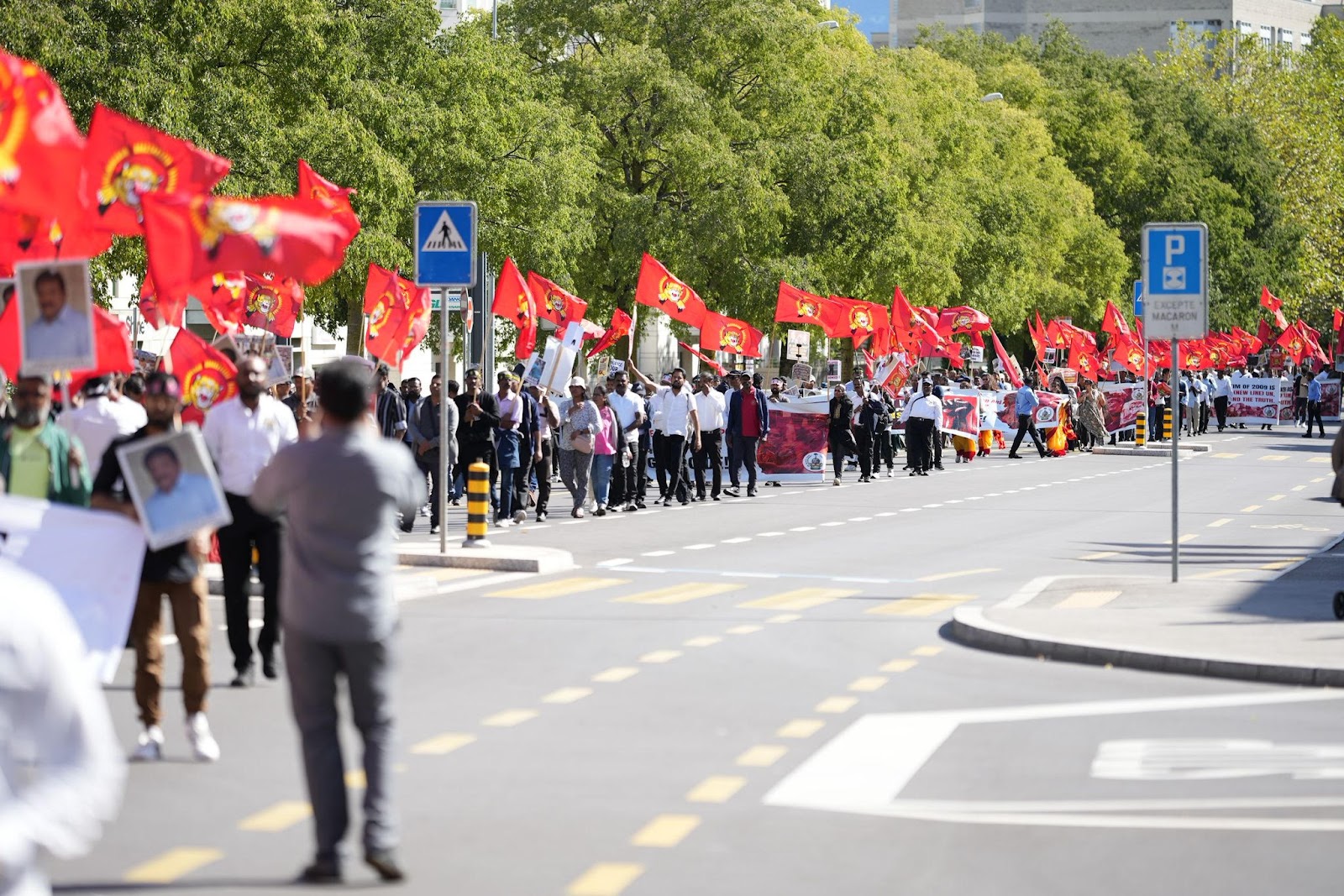 இலங்கையில் இடம்பெற்ற மனித உரிமை மீறல்களைப் பிரதிபலிக்கும் வகையில் பதாதைகளை ஏந்தியும், கோஷங்களை எழுப்பியும் போராட்டத்தில் ஈடுபட்ட அவர்கள், சர்வதேச நீதிப்பொறிமுறையைக்கோரி பேரணியாகச் சென்றனர்.